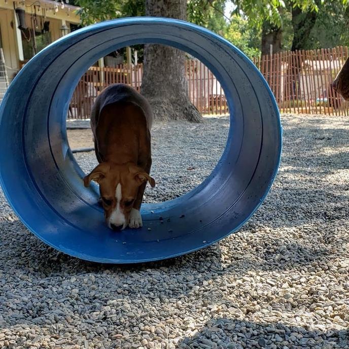 - Play tunnels: Brightly colored plastic tunnels that children use can be transformed into agility training courses for your pup. These tunnels can be great for encouraging your dog to crawl, run through, and play in a new way.